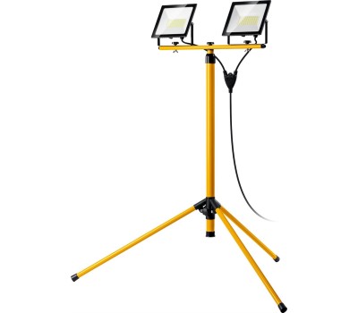Прожекторы STAYER на штативе - осветительный прибор, состоящий из прочной и устойчивой треноги с двумя прожекторами на основе ярких, высокоэффективных и долговечных источников света. Корпус прожекторов выполнен из алюминиевого сплава литого под давлением, обеспечивающего высокую теплоопередачю. Конструкция прожектора защищена от пыли и влаги (IP65). Преимущества Устойчивая металлическая конструкция регулируемая по высоте 65-160 см Срок службы светодиодов 30 000 часов. Быстрый монтаж Яркий белый свет 6500 К Герметичная пыле-влагозащищенная конструкция IP65 Порошковая окраска обеспечивает защиту от коррозии Длинный кабель с одновременным подключением 2-х прожекторов Использование для освещения на открытых строительных и производственных площадках. Используется для подсветки объектов: витрин, экспозиций, рекламных стендов и щитов, фасадов зданий и т.п. Прожекторы могут также применяться для внутреннего освещения больших помещений: залов, спортивных помещений, автостоянок. Конструкция прожектора и применяемые материалы обеспечивают высокую механическую прочность и защиту от проникновения пыли и влаги по классу IP65.
