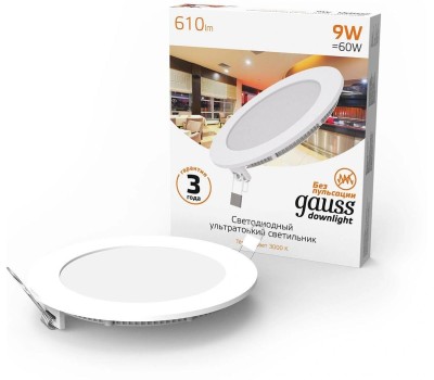 Бренд: GAUSS PartNumber/Артикул Производителя: 939111109 Степень защиты: IP20 Особенности: Встраиваемый светильник Gauss ультратонкий круглый Напряжение питания: 9 В Световой поток (lm): 610 lm Цветовая температура: 3000 К Вес упаковки (ед): 0.538 кг Объем упаковки (ед): 0.000729 м3 Габариты упаковки (ед) ДхШхВ: 0.18x0.15x0.027 м