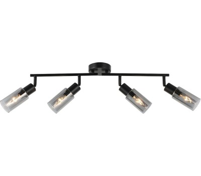 Настенно-потолочный светильник (спот) 4x40Вт E14, металл/стекло, черный/дымчатый