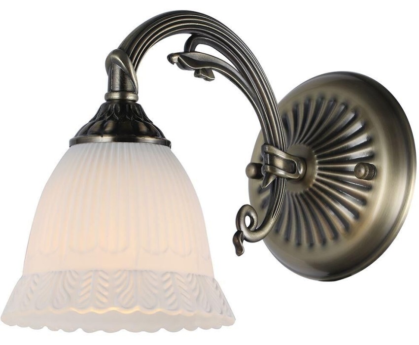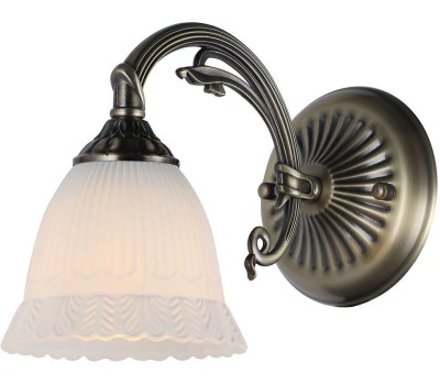 Настенный светильник 1х60Вт E27, металл/стекло, бронза/плафон белый матовый