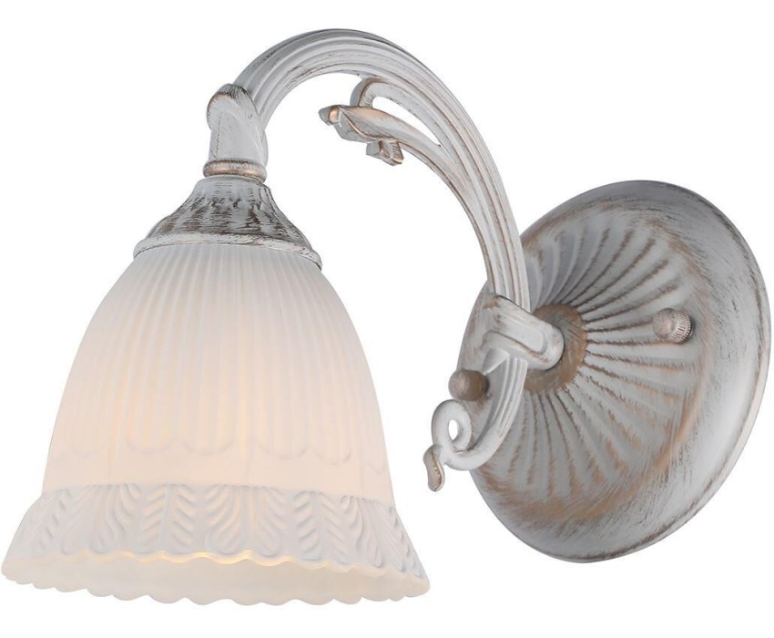 Настенный светильник 1х60Вт E27, металл/стекло, античный белый/плафон белый матовый