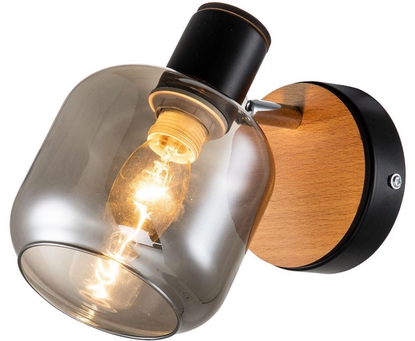 Настенный светильник 1x40Вт E14, металл/дерево/стекло, чёрный