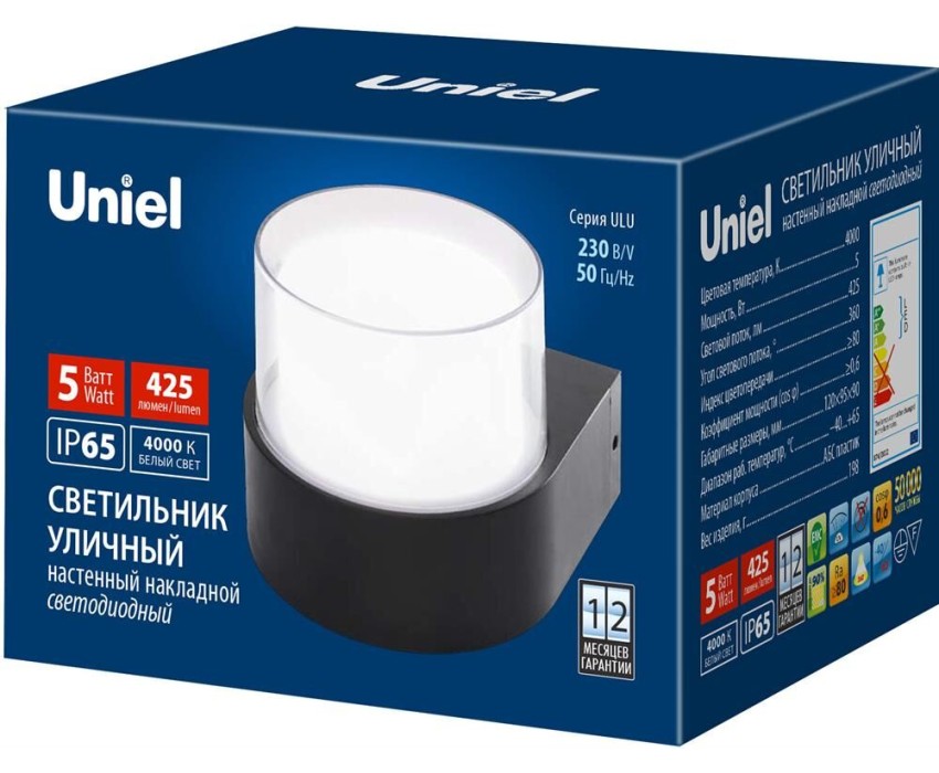 светильник UNIEL ULU-P21A-5W/4000K IP65 BLACK