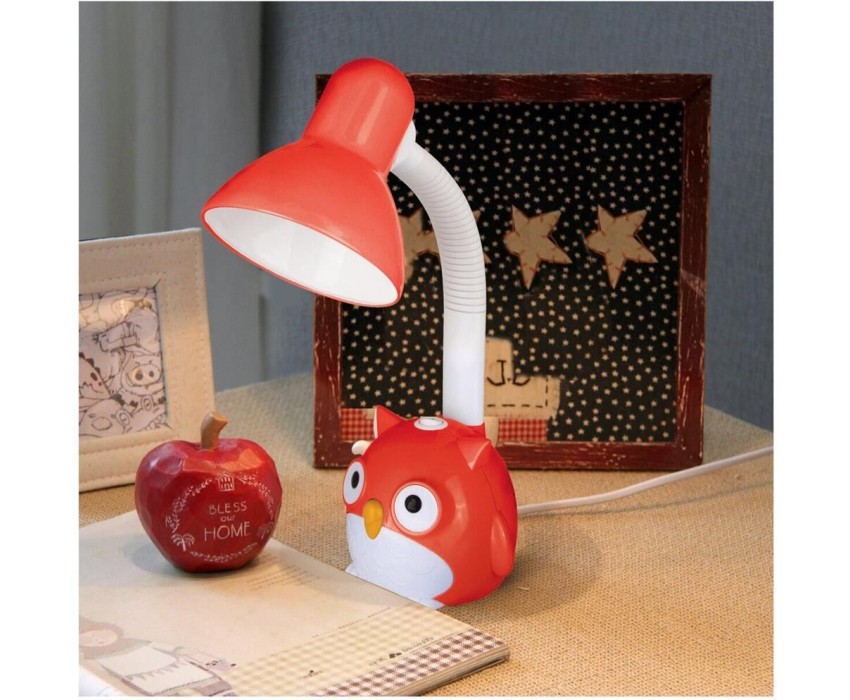 Настольный светильник Camelion KD-380 "Сова" C04 красный, размер 345х120х140мм, источник света - лампа шарик, тип лампы - 40/D/E27, патрон - E27, мощность 40Вт, ~230 В, 50 Гц. Металлический плафон, керамический патрон