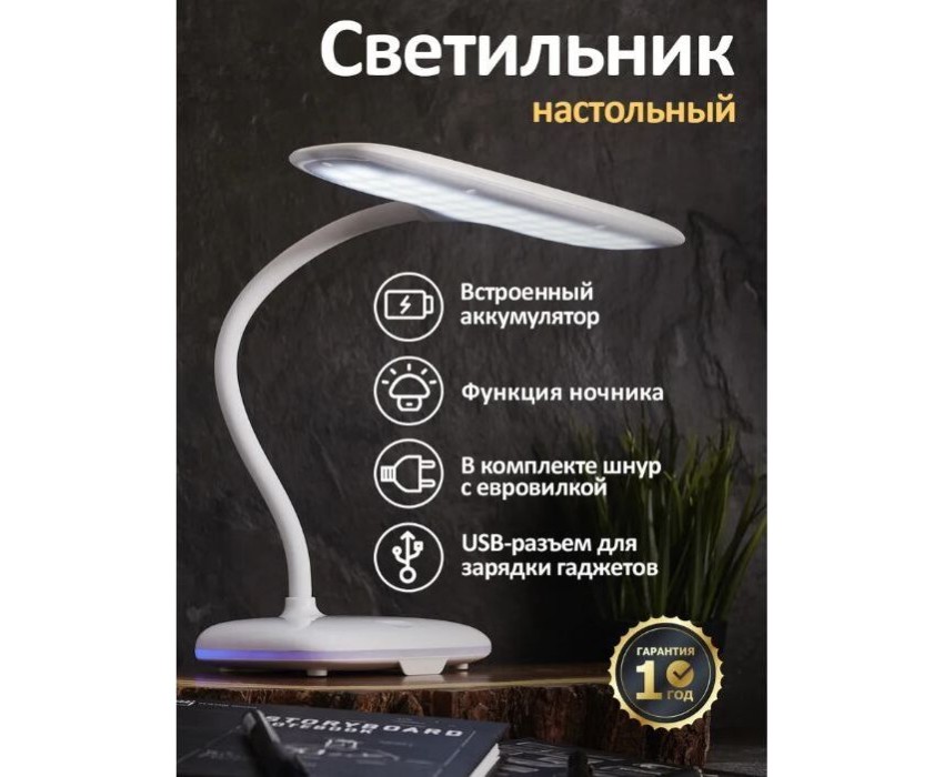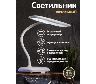 Светильник настольный REXANT (75-0222) белый Светильник настольный Baoli, USB-зарядка устройств, вращение 360°