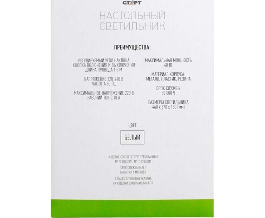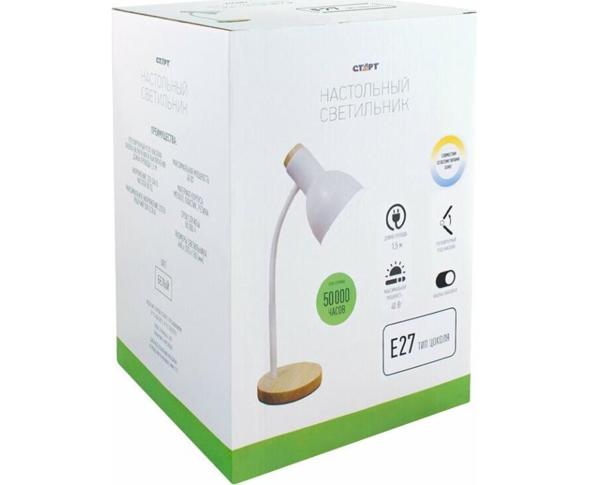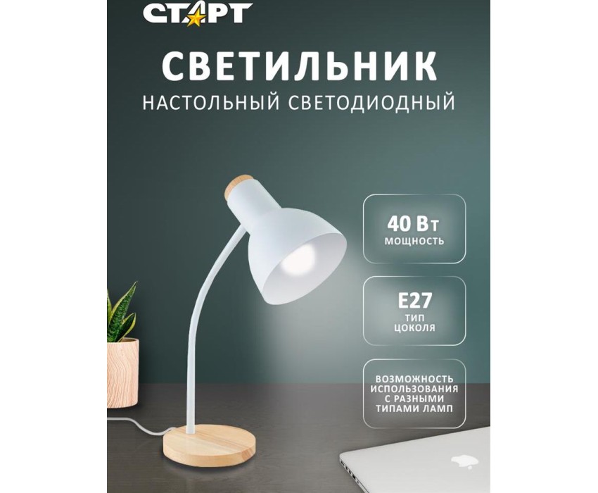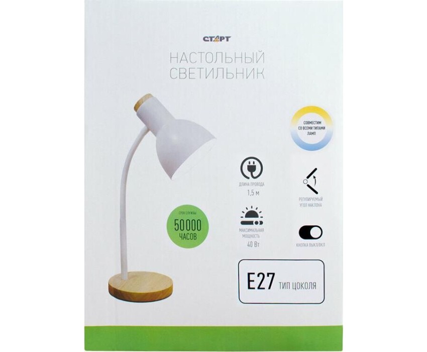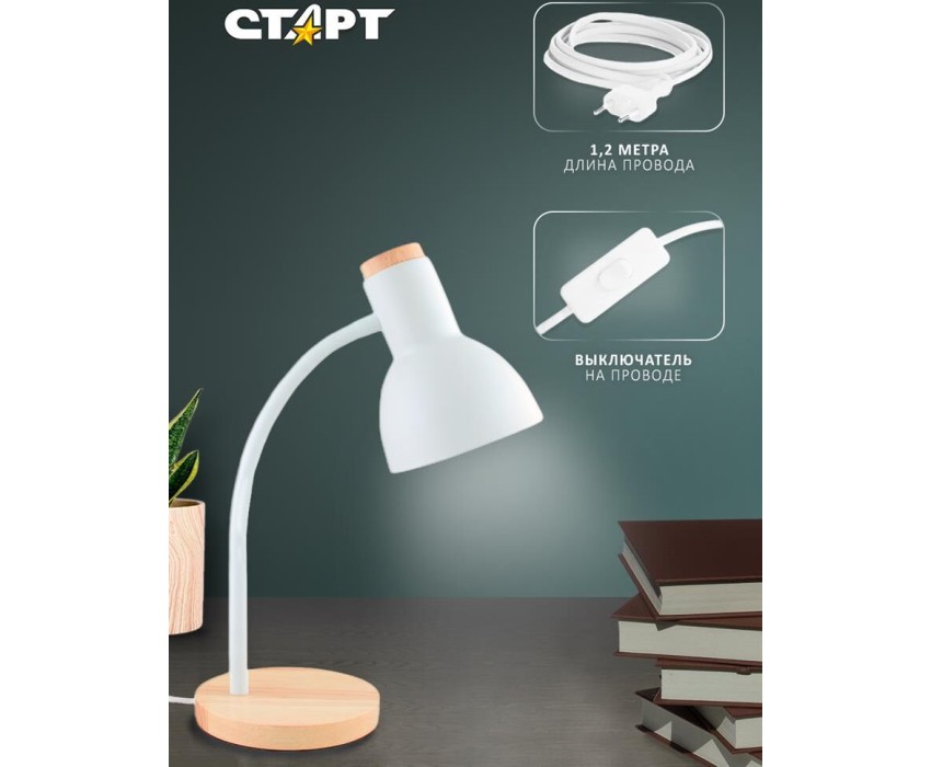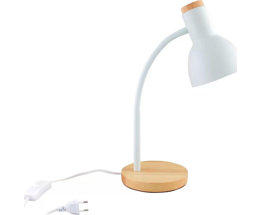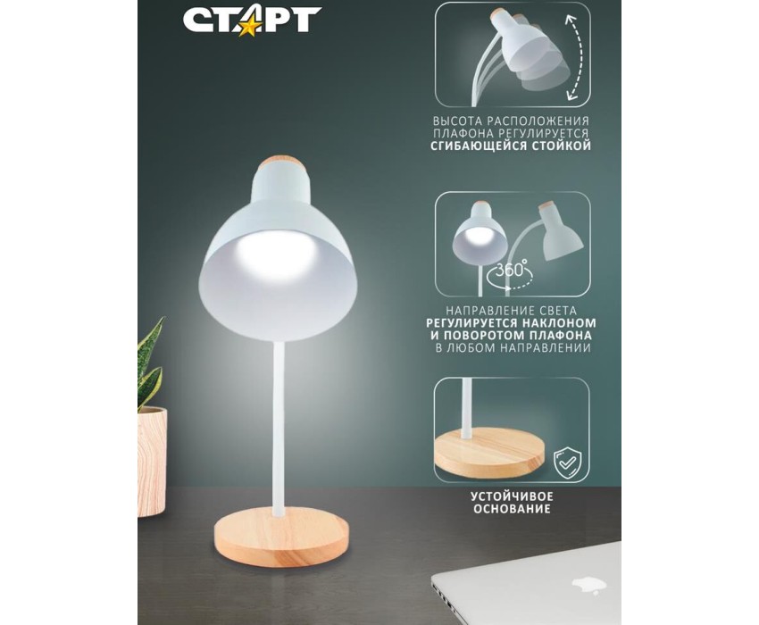 Максимальная мощность: 40 Вт Тип цоколя: E27 Возможность использования с разными типами ламп Длинна провода 1,2 м. Выключатель на проводе Материал: пластик/метал/дерево Размер: 450x170x150 мм Высота расположения плафона регулируется сгибающейся стойкой.