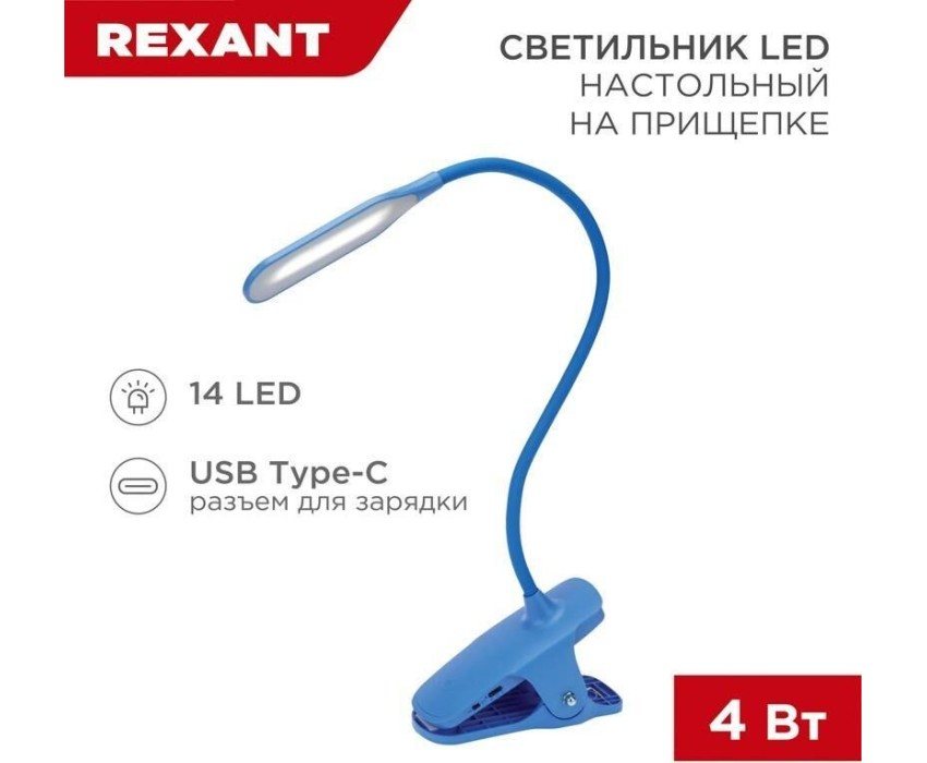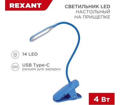 Настольная лампа REXANT (609-034) Click 4Вт, на прищепке, синий