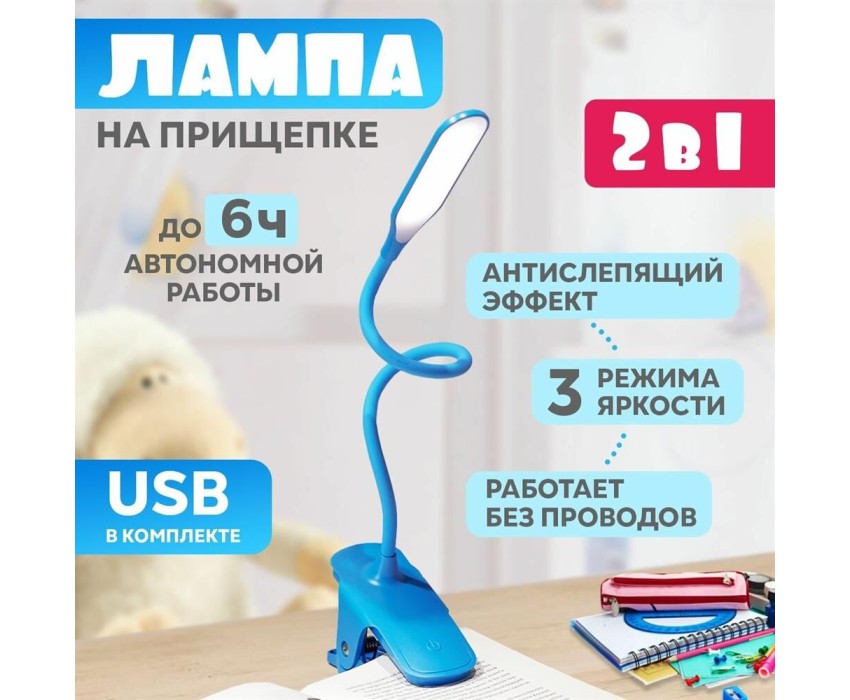 Светодиодный светильник используется для освещения рабочего места или прикроватной зоны. Оснащен матовым рассеивателем с антибликовым эффектом, который обеспечивает равномерное и мягкое распределение света без мерцания и пульсаций. Такое стабильное освещение не только защищает глаза от напряжения, но и способствует повышению комфорта при работе. Три уровня яркости позволяют выбрать наиболее подходящий уровень освещения в зависимости от текущей потребности. Предусмотрено крепление на прищепку: фиксация к торцу стола, кровати или тумбы. Светильник оснащен аккумулятором, который позволяет работать до 6 часов при отсутствии питания от сети.