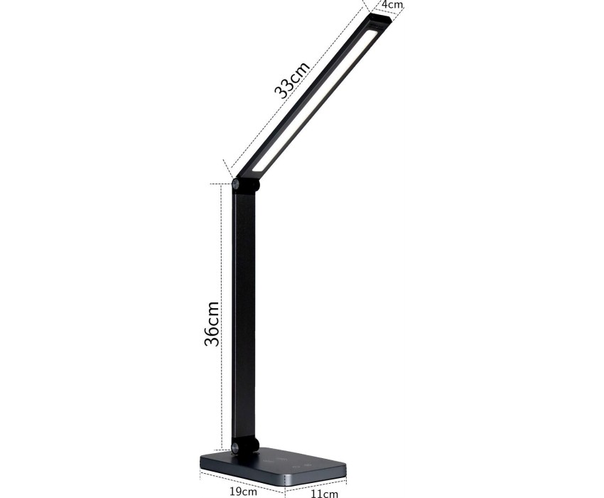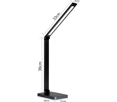 Номинальное напряжение: AC-230/DC-5V / Световой поток 590 Лм / 3-ступенчатый диммер / 5-ступенчатая настройка режимов цветовой температуры / Сенсорное управление / Питание от USB разъёма и сети / Беспроводная зарядка Qi-стандарта / Порт USB Type-A для зарядки портативных устройств / Тонкий корпус / Полное складывание / Материал корпуса: алюминиевый сплав, ABS-пластик / Цвет корпуса: чёрный / Степень защиты от пыли и влаги: IP20 /