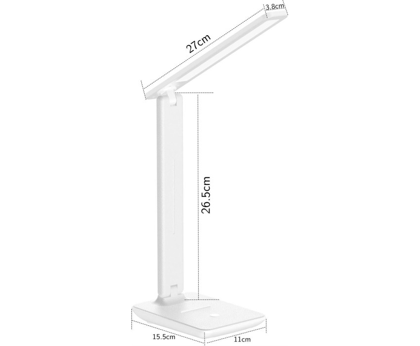 Номинальное напряжение: 230 в~50 Гц / Световой поток 480 Лм / 3-ступенчатый диммер / Дневной свет / Сенсорное управление / Питание от сети / Покрытие корпуса светильника стилизовано под кожу / Удобная подставка (для смартфона, зеркала) / Материал корпуса: ABS-пластик, текстура "кожа" / Цвет корпуса: белый / Степень защиты от пыли и влаги: IP20 /