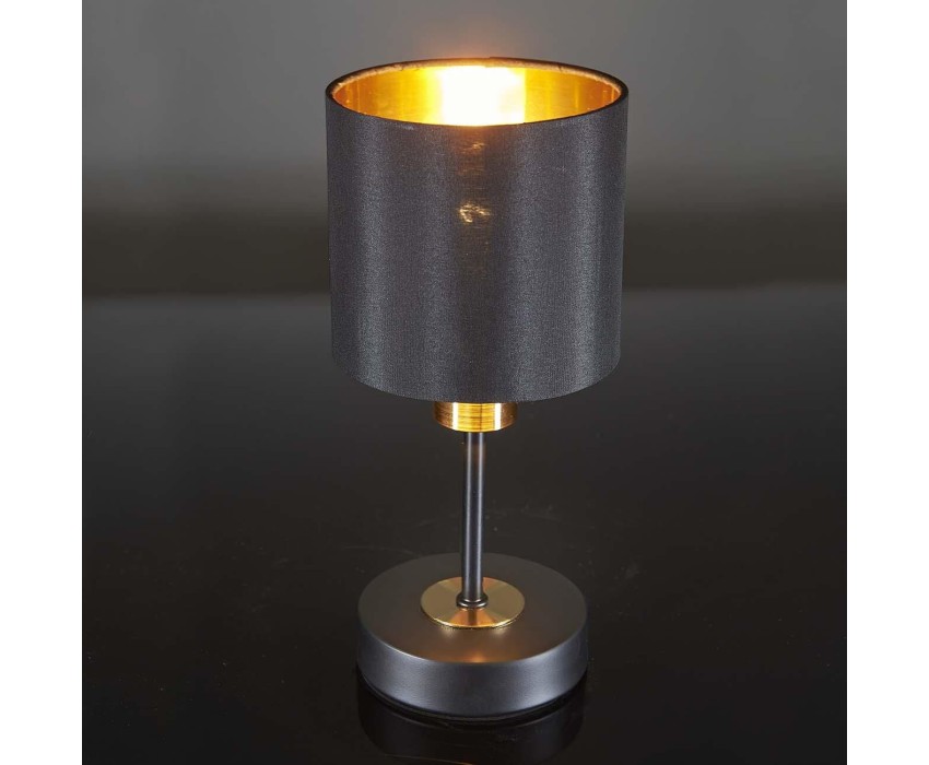 Настольный светильник 1х40Вт Е14, металл/ткань, цвет чёрный/золото