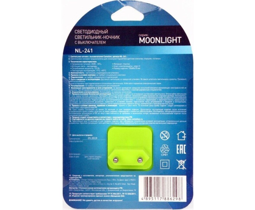 Источник света: Светодиоды. Напряжение питания : 220V. Мощность: 0,5. Включение/ выключение: Выключатель.