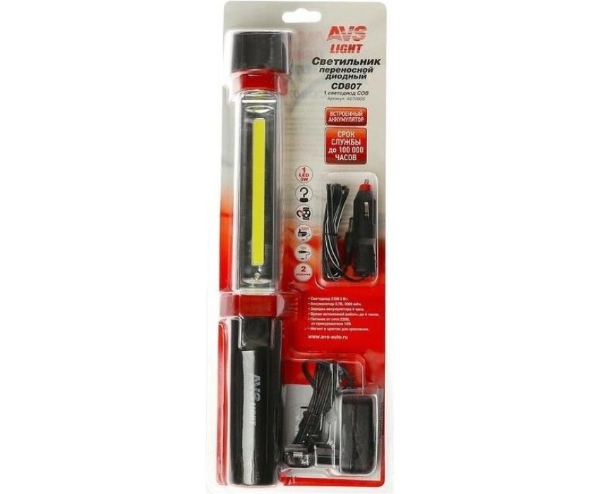 Светильник переносной AVS CD807 COB 220/12В (акб)