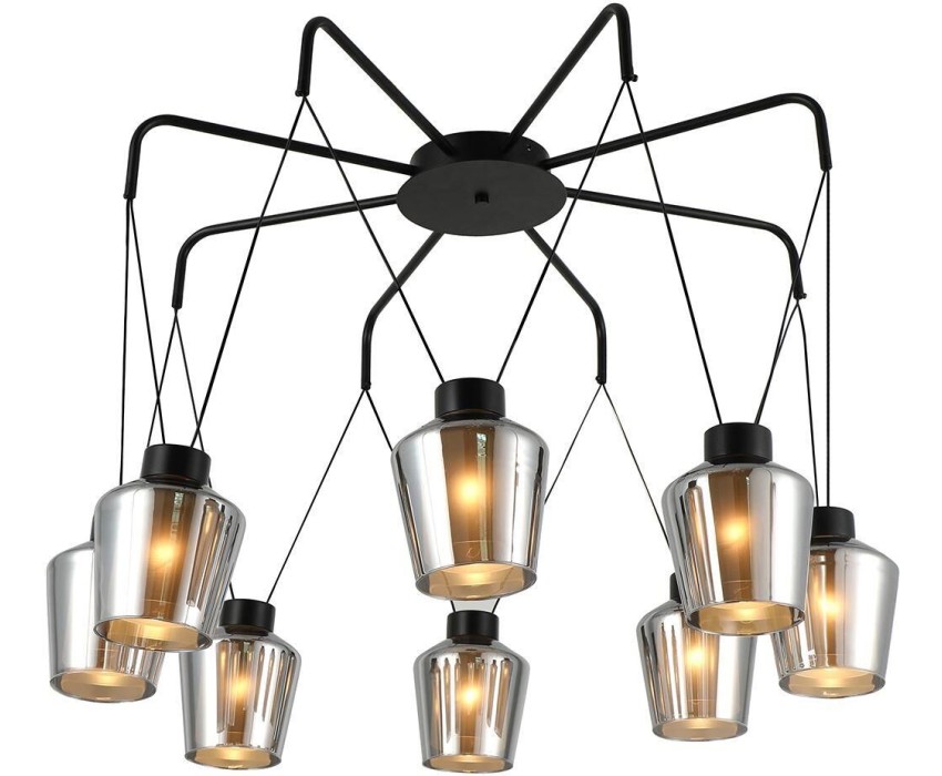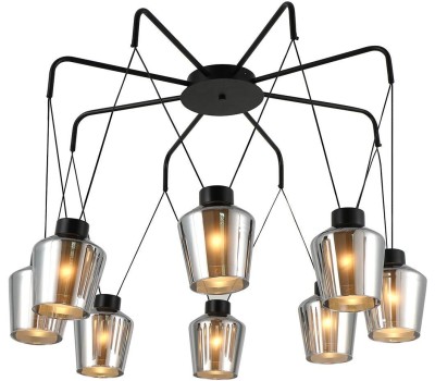Люстра подвесная 8x40Вт E27, металл/стекло, черный, дымчатый плафон