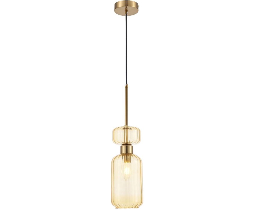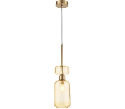 Подвесной светильник 1x60Вт E14, металл/стекло, античная бронза/янтарный