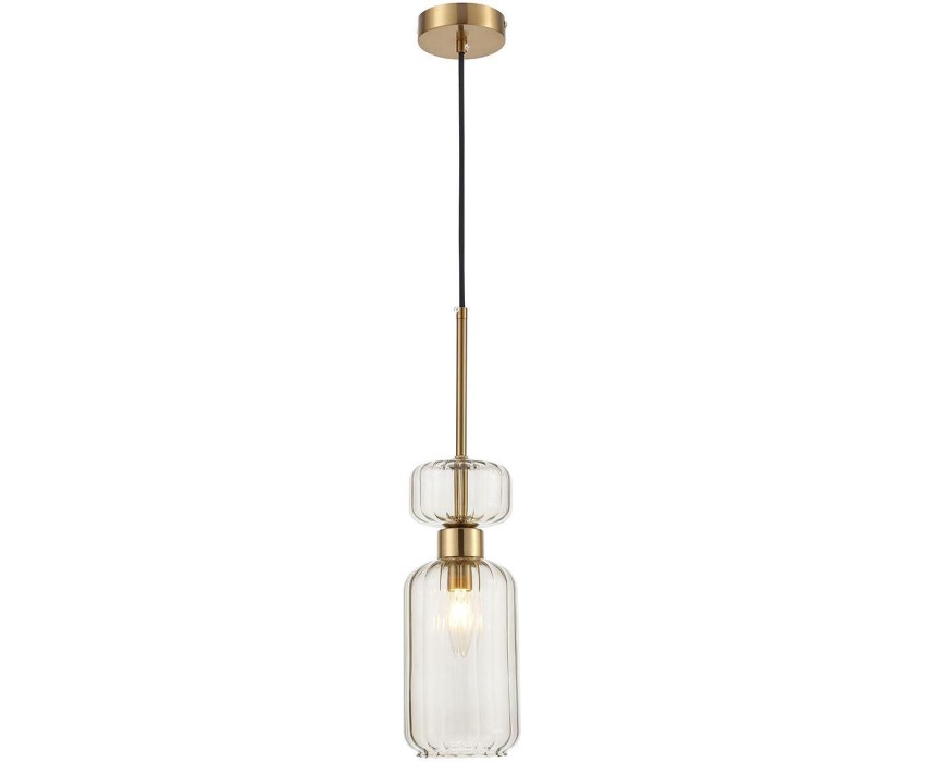 Подвесной светильник 1x60Вт E14, металл/стекло, античная бронза/бежевый