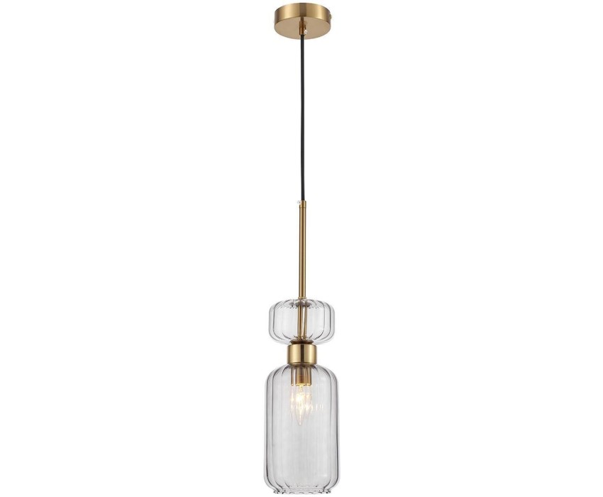 Подвесной светильник 1x60Вт E14, металл/стекло, античная бронза/дымчатый плафон
