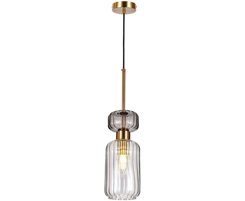 Подвесной светильник 1x60Вт E14, металл/стекло, античная бронза/дымчатый/прозрачный
