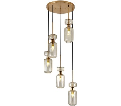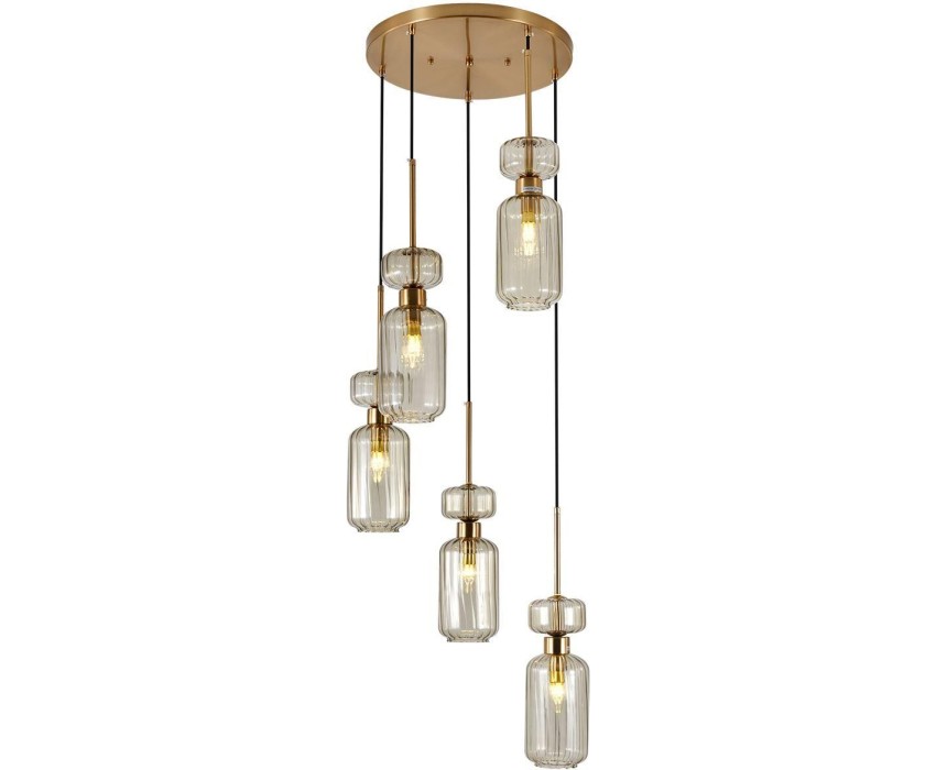 Подвесной светильник 5x60 E14, металл/стекло, античная медь, плафон бежевый