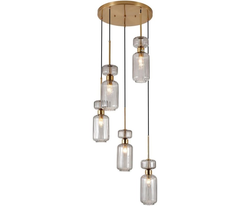 Подвесной светильник 5x60 E14, металл/стекло, античная медь, плафон дымчатый