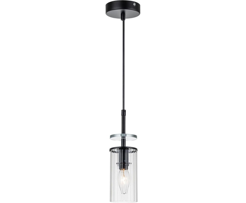 Подвесной светильник 1х40Вт Е14, металл/стекло, чёрный