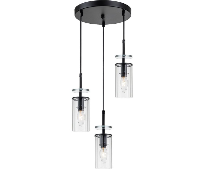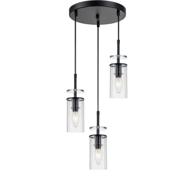 Подвесной светильник 3х40Вт Е14, металл/стекло, чёрный