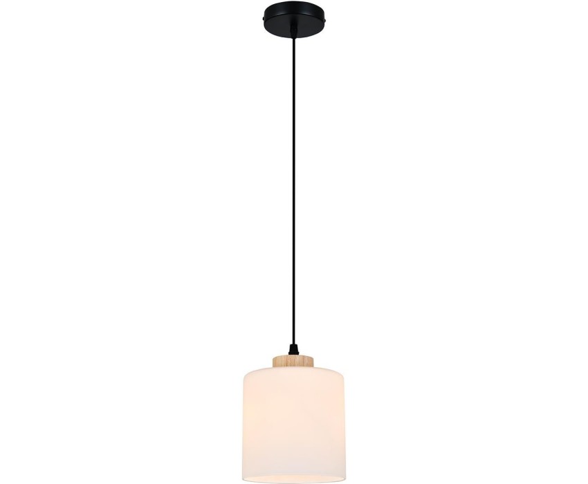 Светильник подвесной 1х60Вт E27, металл/стекло, черный/белый/дерево