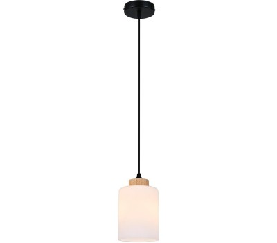 Светильник подвесной 1х60Вт E27, металл/стекло, черный/белый/дерево