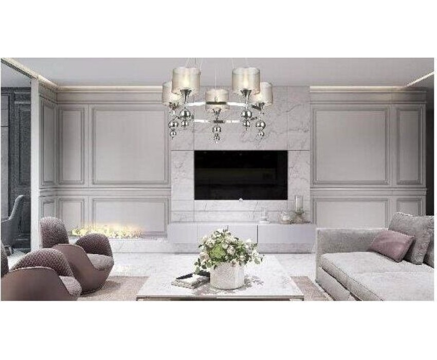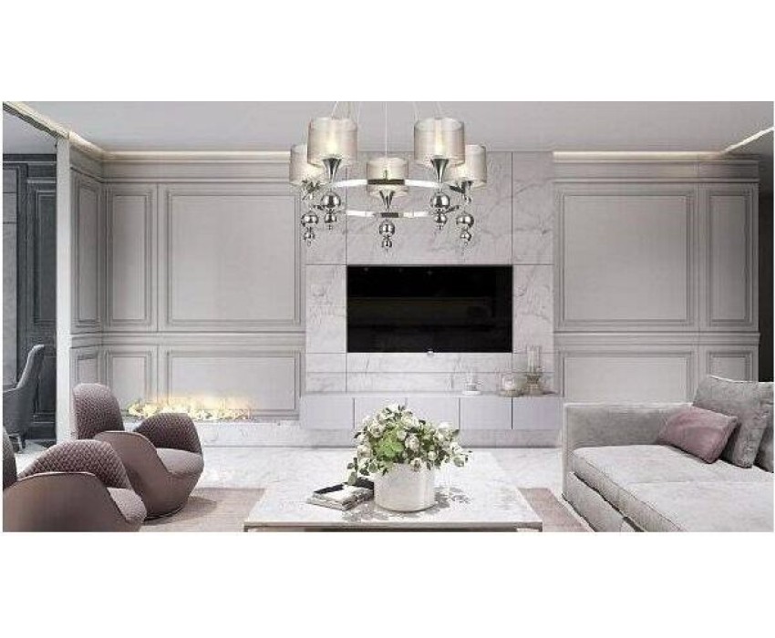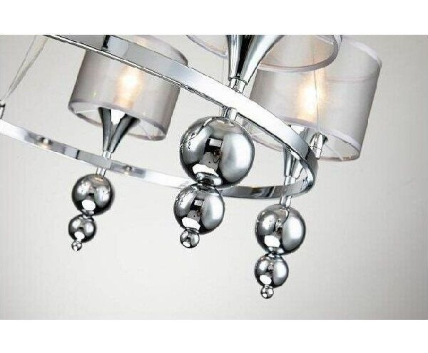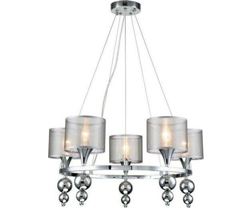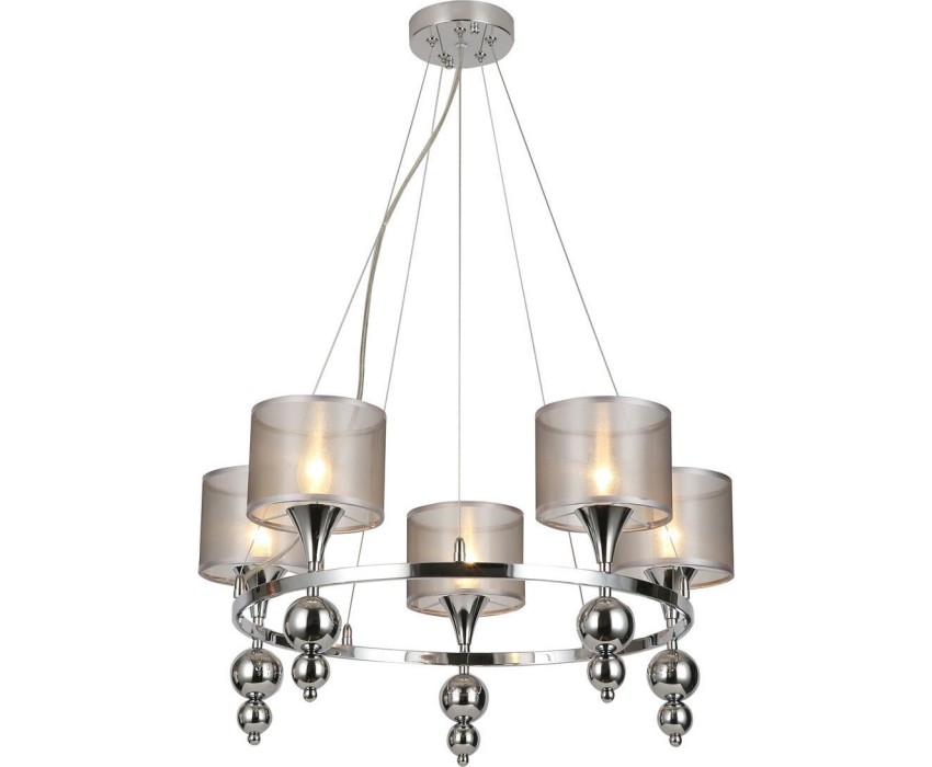 Подвесной светильник 5x40Вт E14, металл/ткань-органза, хром/серый