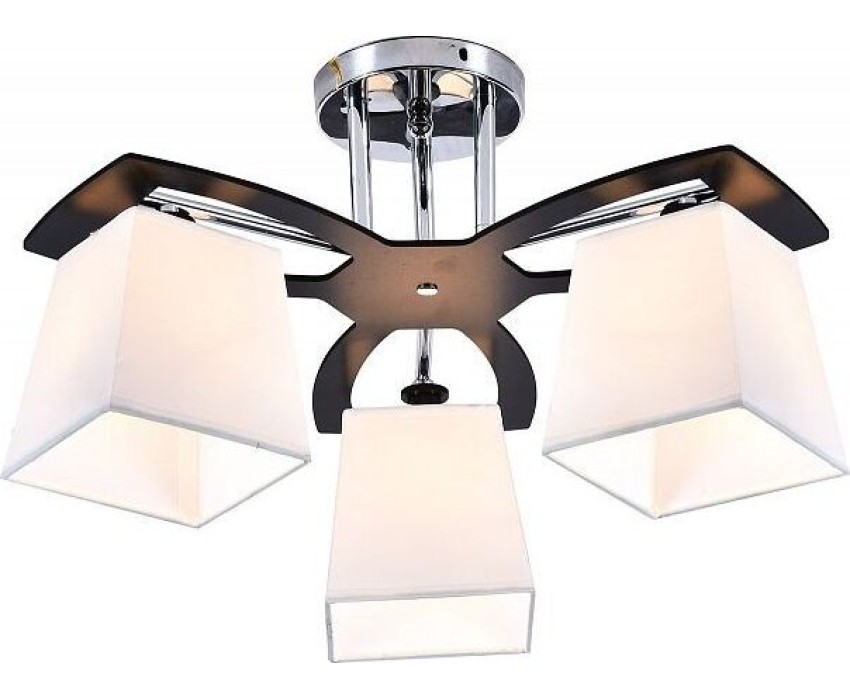 Тип светильника: Потолочный светильник Количество и мощность ламп: 3 x 60W Тип цоколя: E27 Цвет: хром/черный/дерево/белый плафон Размеры (Д х Ш х В): 500 x 500 x 280 Материал: металл/дерево/ткань S освещения: 9 м2