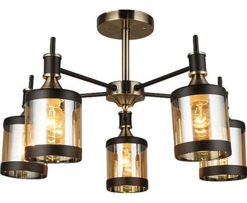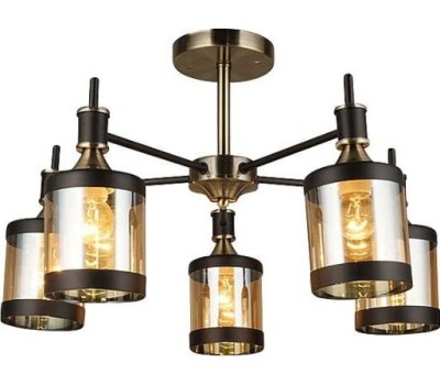 Потолочный светильник 5x60Вт E27, металл/стекло, черный/античная бронза/янтарный плафон