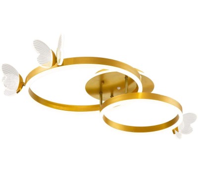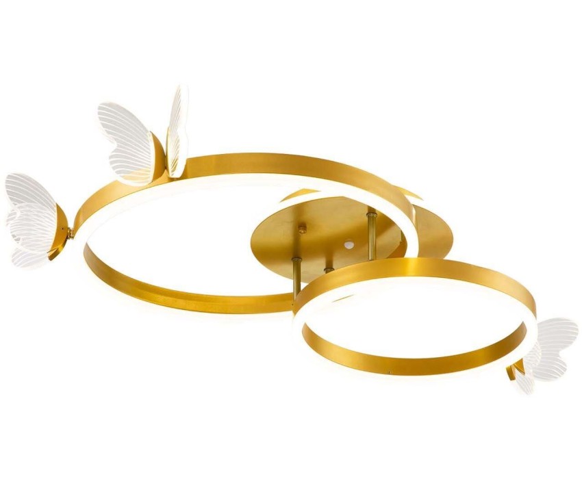 Светодиодный светильник 65+15Вт, 4920Лм, 3300К-6500К,Ra>80, ИК-пульт, плавная регулировка мощности, изменение цветовой температуры, ночник, металл/акрил, золото