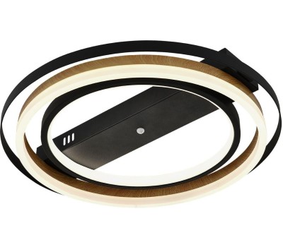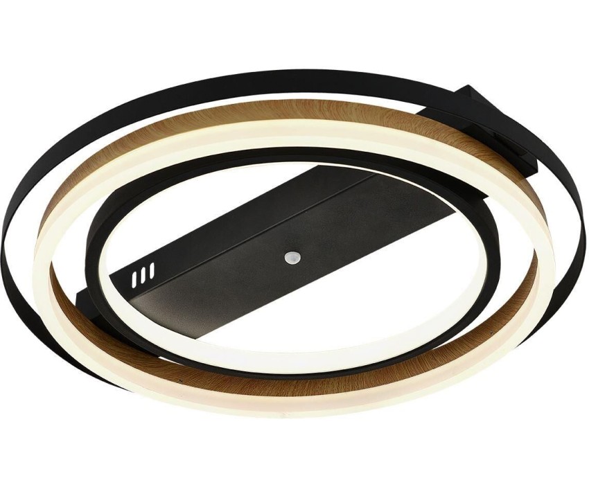Потолочный светодиодный светильник 60Вт, 4800лм, 3000-6500K, Ra>80, плавная регулировка мощности, изменение цветовой температуры, ночник, пульт, металл/акрил, чёрный/дерево