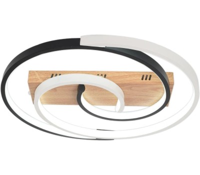 Потолочный светодиодный светильник 67Вт, 2500лм, 3000-6000K, Ra>80, плавная регулировка мощности, изменение цветовой температуры, ночник, пульт, металл/силикон, черный/дерево