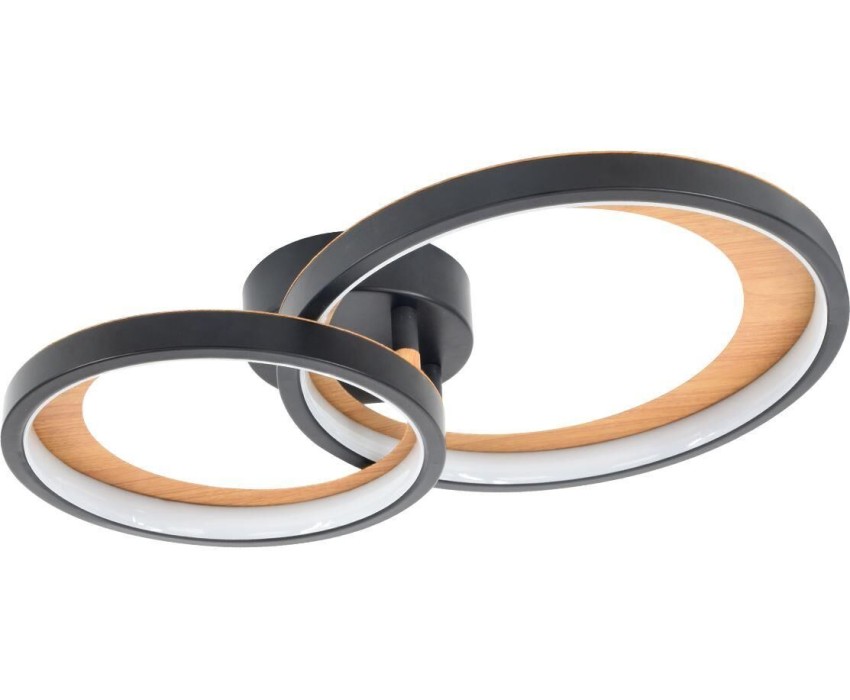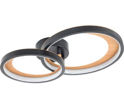 Потолочный светодиодный светильник 48Вт, 1200лм, 3000-6000K, Ra>80, плавная регулировка мощности, изменение цветовой температуры, ночник, пульт, металл/силикон, черный/дерево