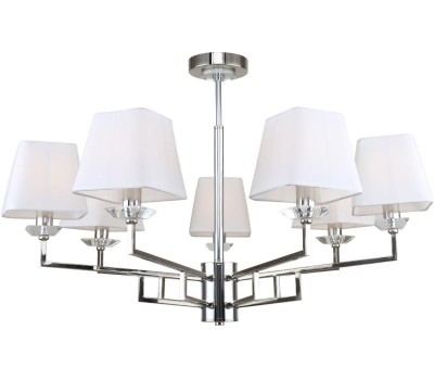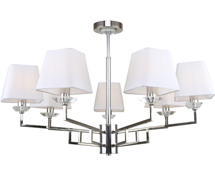 Люстра на штанге 7x40Вт E14, металл/ткань/хрусталь, никель, белый плафон, прозрачный хрусталь