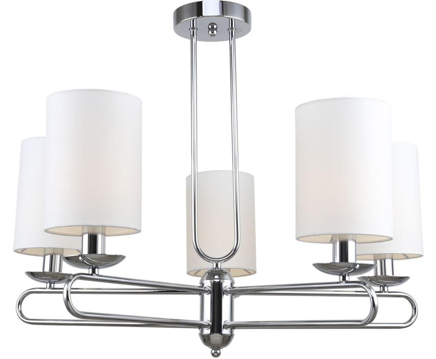Светильник на штанге 5x40Вт E14, металл/ткань, хром/белый плафон