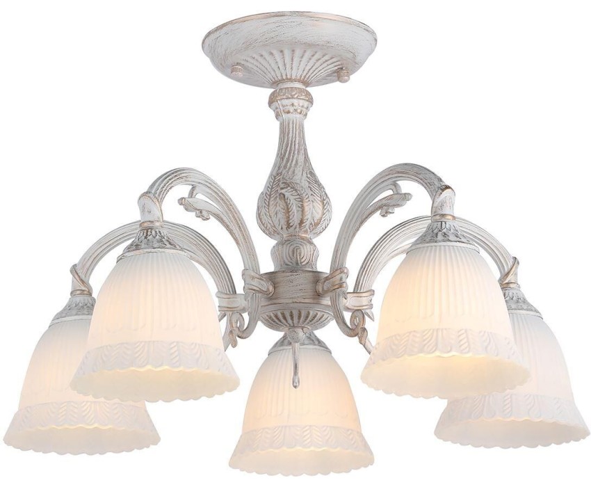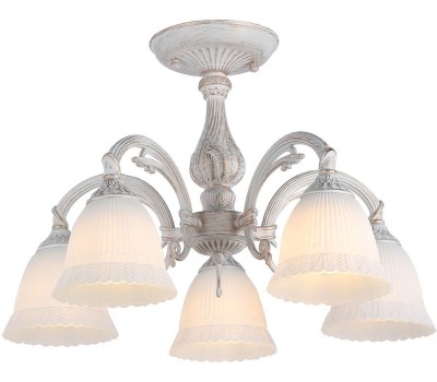 Потолочный светильник 5х60Вт E27, металл/стекло, античный белый/плафон белый матовый