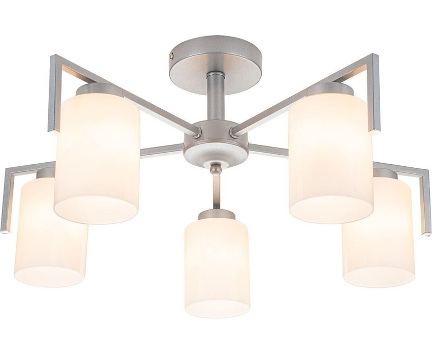Потолочный светильник 5х60Вт E27, металл/стекло, серебро