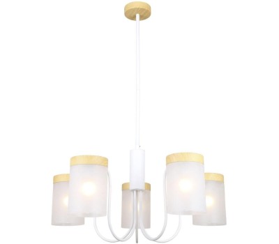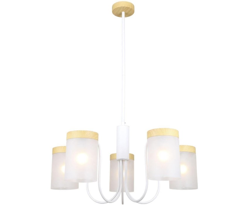 Люстра на штанге 5x40Вт E14, металл/стекло, белый/дерево, матовый плафон