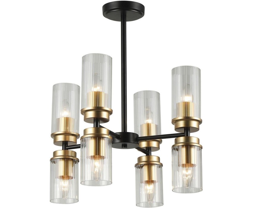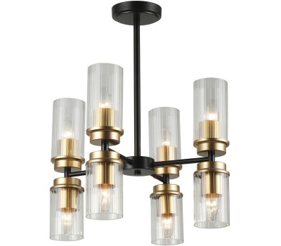 Люстра на штанге 8x40Вт E14, металл/стекло, черный/золото, прозрачный плафон