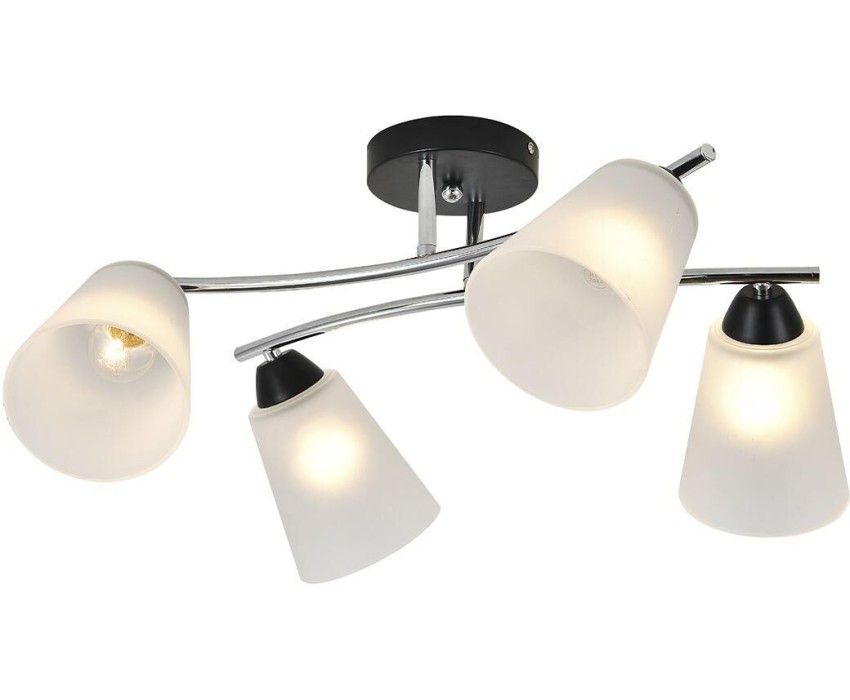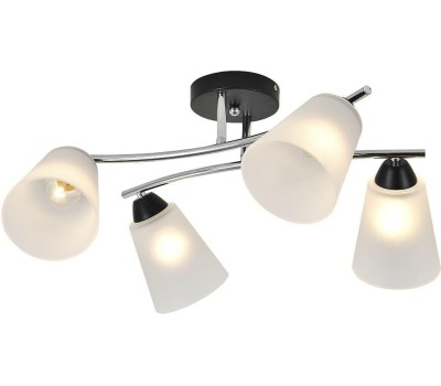 Люстра потолочная 4х60Вт E27, металл/стекло, хром/черный, матовый плафон
