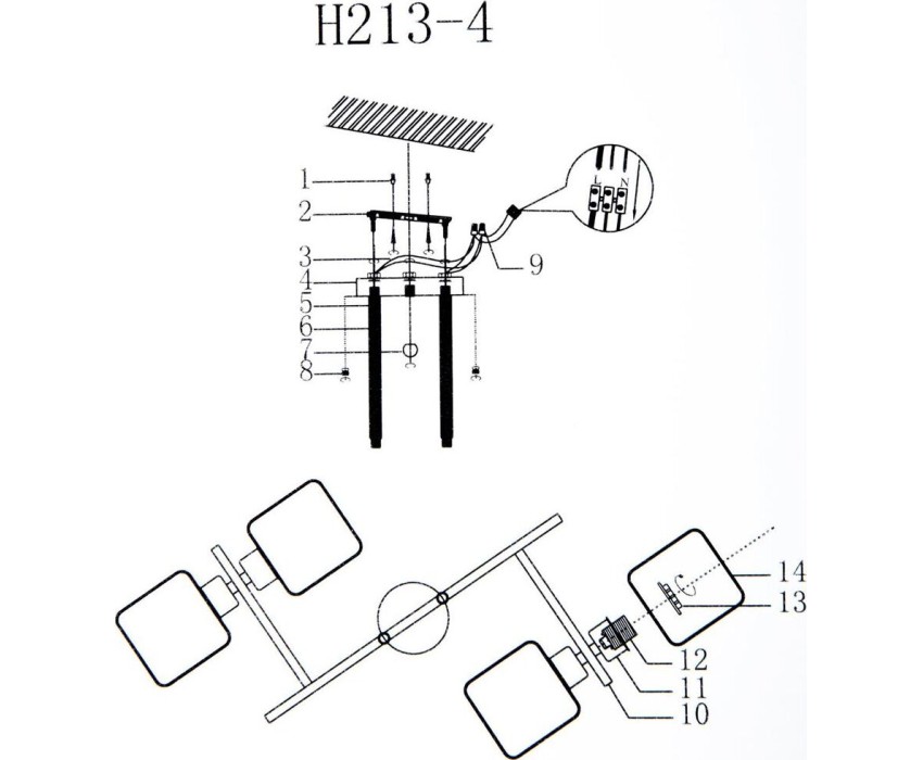 освещение HIPER Люстра Shepard H213-4, 4 х 60 Вт, черный/прозрачный