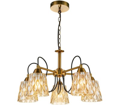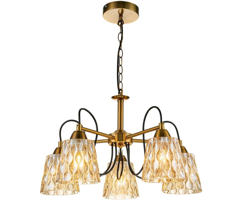 Подвесной светильник 5x40Вт E27, металл/стекло, бронза/янтарный