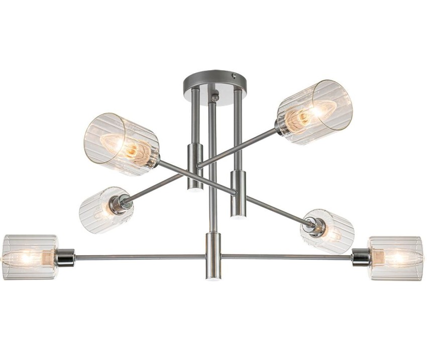 Светильник на штанге 6x40Вт E14, металл/стекло, хром/серебро/прозрачный