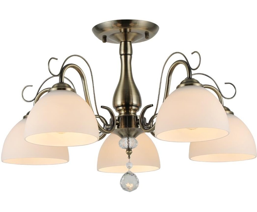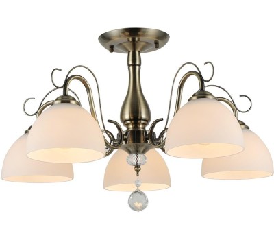 Люстра на штанге 5x40Вт E27, металл/стекло/хрусталь, бронза, белый матовый плафон