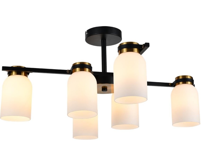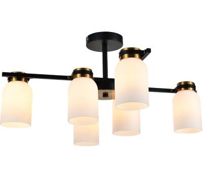 Люстра на штанге 6x40Вт E14, металл/стекло, черный/бронза, белый плафон