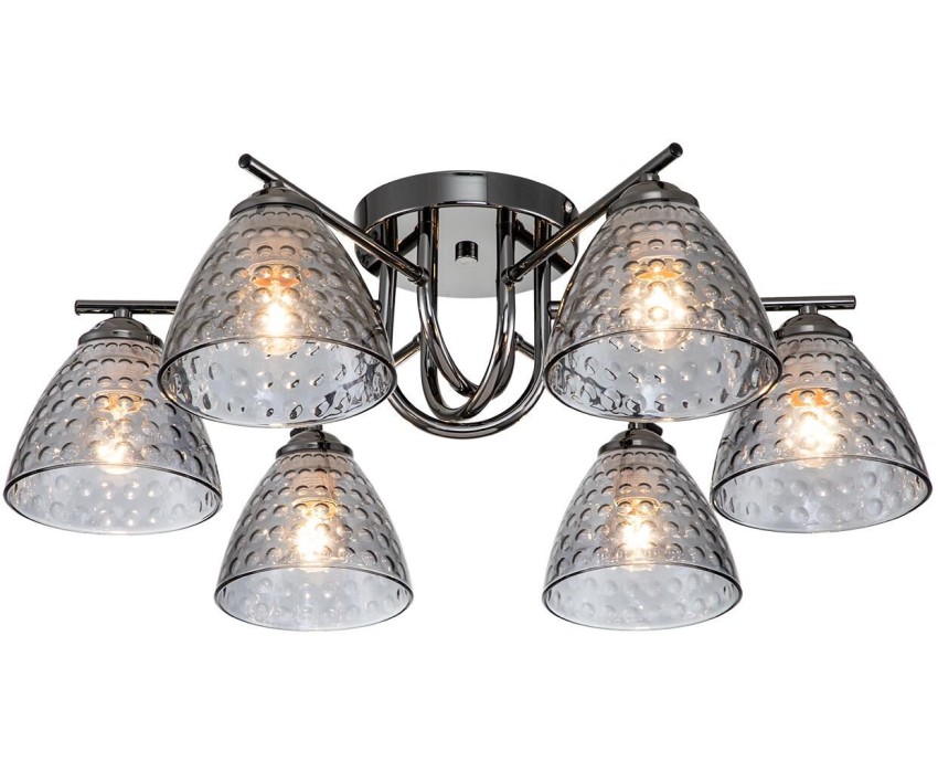 Потолочный светильник 6х60Вт E27, металл/стекло, черный