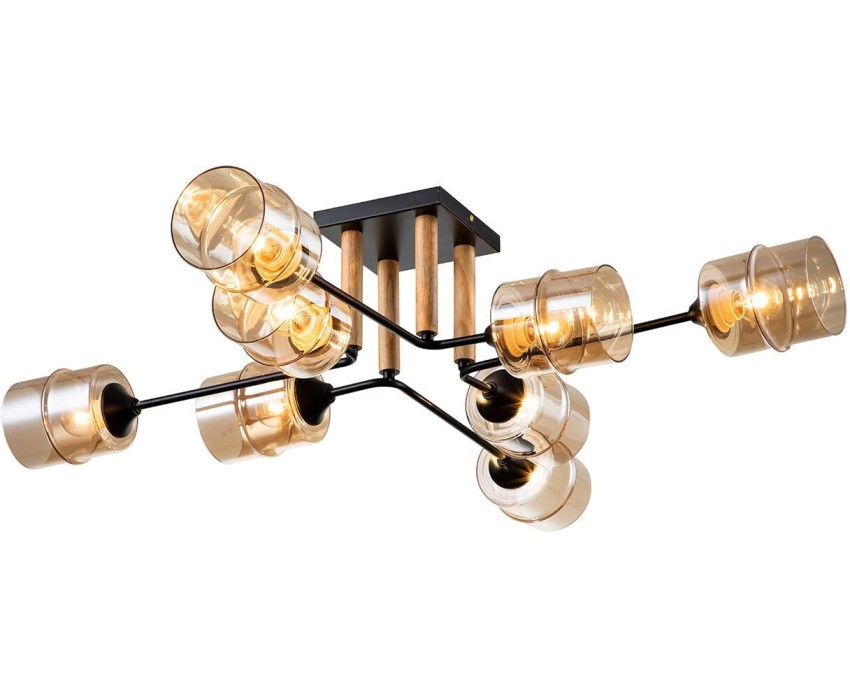 Потолочный светильник 8x60Вт E27, металл/стекло/дерево, черный/прозрачный плафон