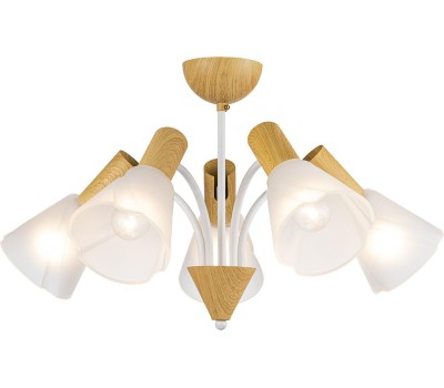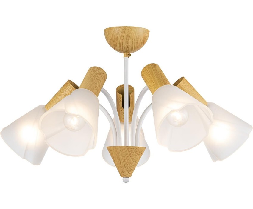 Светильник на штанге 5x40Вт, E14, металл/стекло, белый/дерево